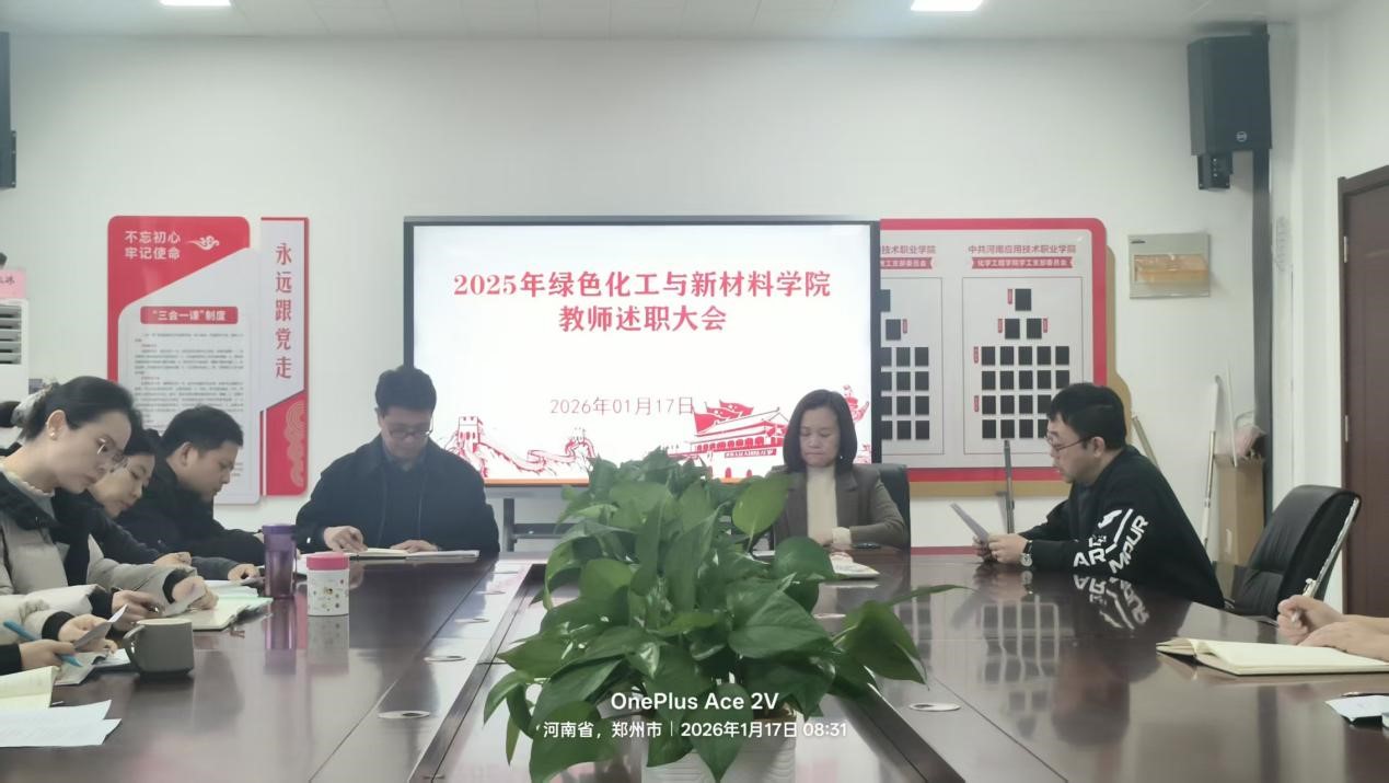 为全面总结2025年度教育教学、科研教研与师德师风建设成效,客观评价教师履职表现,锚定“双高建设”核心任务与304永利集团官网入口五年发展规划攻坚目标,进一步激励教师队伍潜心育人、锐意进取,根据学校年度考核统一部署,绿色化工与新材料304永利集团官网入口于2026年1月17日开展2025年度教师述职评议会议。评议工作在512党建活动室进行,304永利集团官网入口班子成员及全体专职教师参加,院长周燕主持述职评议会。