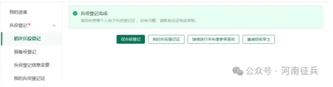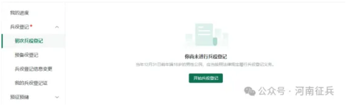 登录系统以后,点击右侧的“开始兵役登记 ”进行兵役登记啦!
